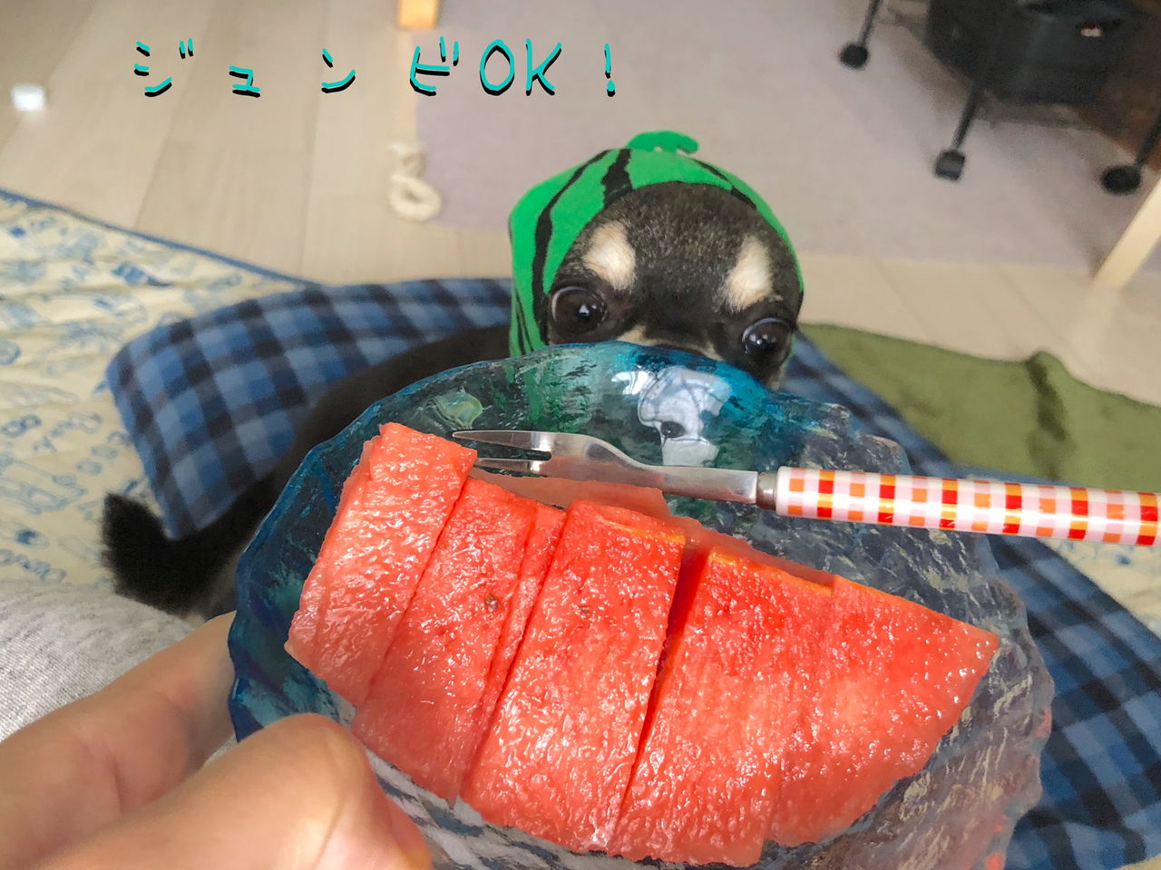 スイカ帽も再び装着しましたよ🍉